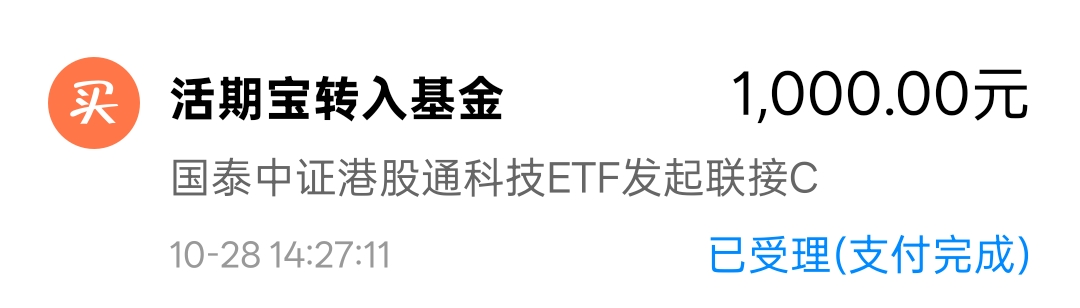 今天低吸一笔中线定投的$国泰中证港股通科技ETF发起联接C(OTCFUND|015740)$,后市如有调整准备继续低吸。