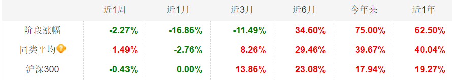 近1年大涨62.5%,跑赢同类平均超22%;今年来大涨75%,跑赢同类平均超25%,市场排名前10,表现很出色。