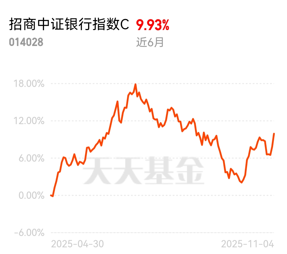 选高股息得看实际收益,港股无风险收益率4~5%,境内不到2%,A股银行性价比更高。招商中证银行指数C没让人失望,近6个月涨了9.93%,值得考虑。