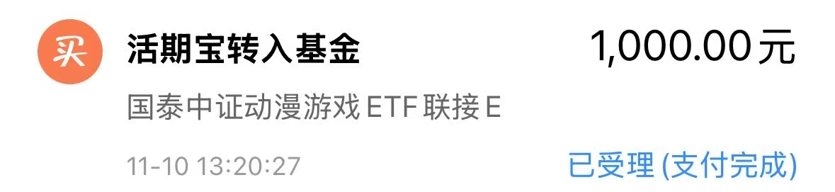 我今天建仓 $国泰中证动漫游戏ETF联接E(OTCFUND|022481)$ 1000元