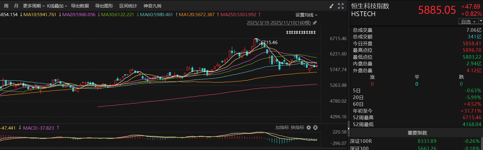 恒生科技今天上涨走势,技术面上120日均线的支撑力度还是不错,接下来要关注收复60日均线的力度。