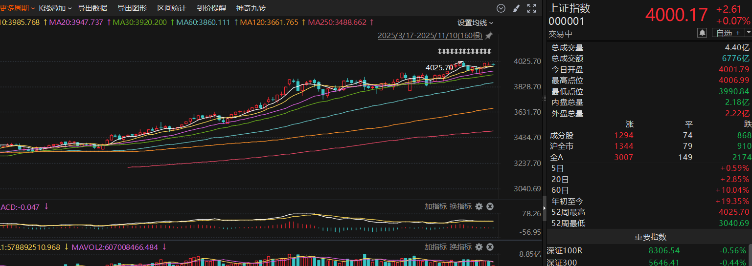 技术面上,今天继续收十字星,MACD持续出现钝化现象,如果不能放量突破4025前高,有可能出现顶分型形态,短期大盘继续在3730-4025的箱体震荡,要观察是否能出现回踩箱体下沿,以及回踩的支撑力度
