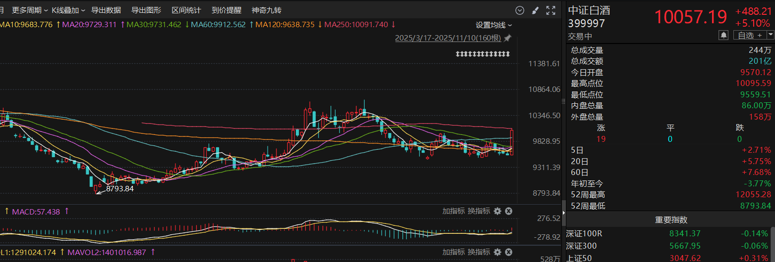 白酒今天大涨走势,盘中涨幅超过5%,一天回本!今天不操作