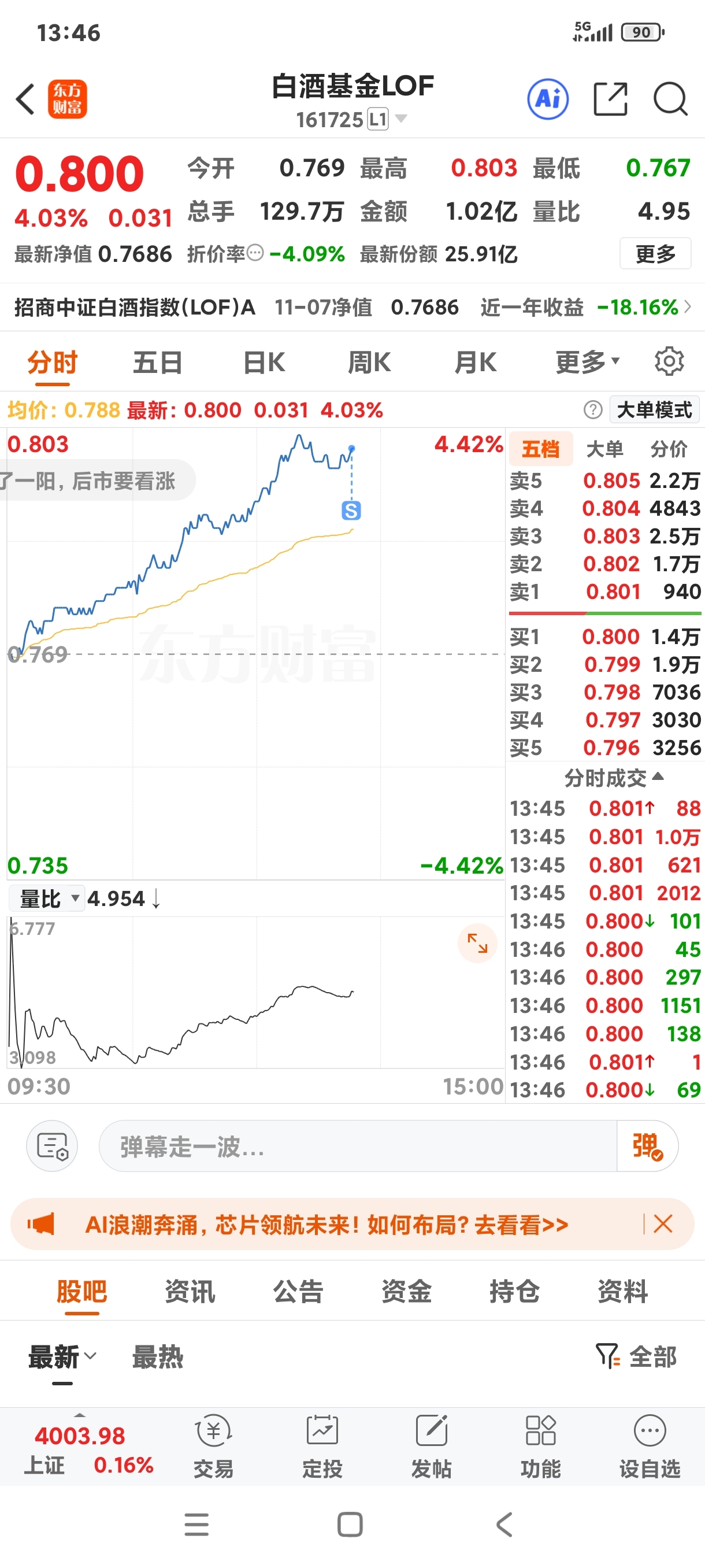 $白酒基金LOF(SZ161725)$ 卖了,你可以继续涨了
