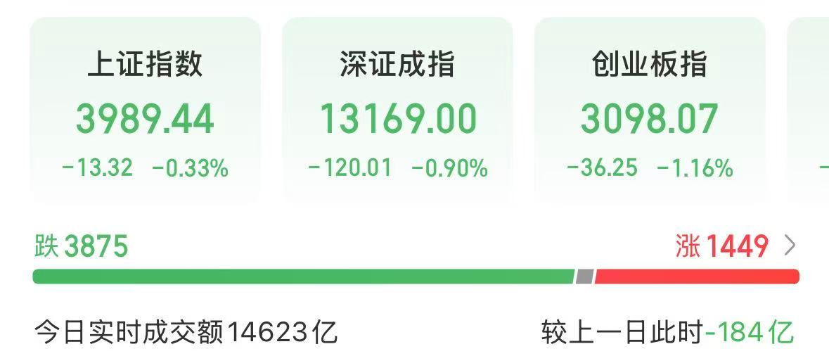盘面上,截至我发文,上证指数下跌0.44%,深成指数下跌0.88%,创业板指数下跌1.22%
