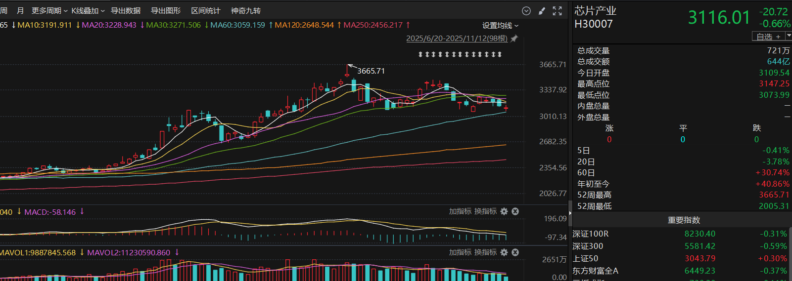 今天三大指数继续回落,在银行的护盘下,上证稍微抗跌一些,科创50、创业板相对较弱
