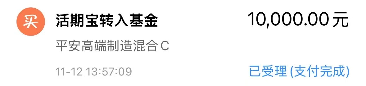 我今天继续大幅加仓$平安高端制造混合C(OTCFUND|007083)$ 10000