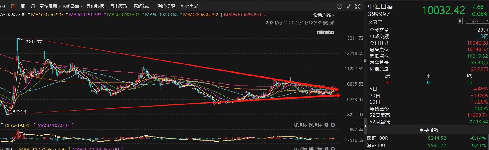 白酒今天小跌走势,相对大盘还算抗跌,也是公募目前偏低配的方向
