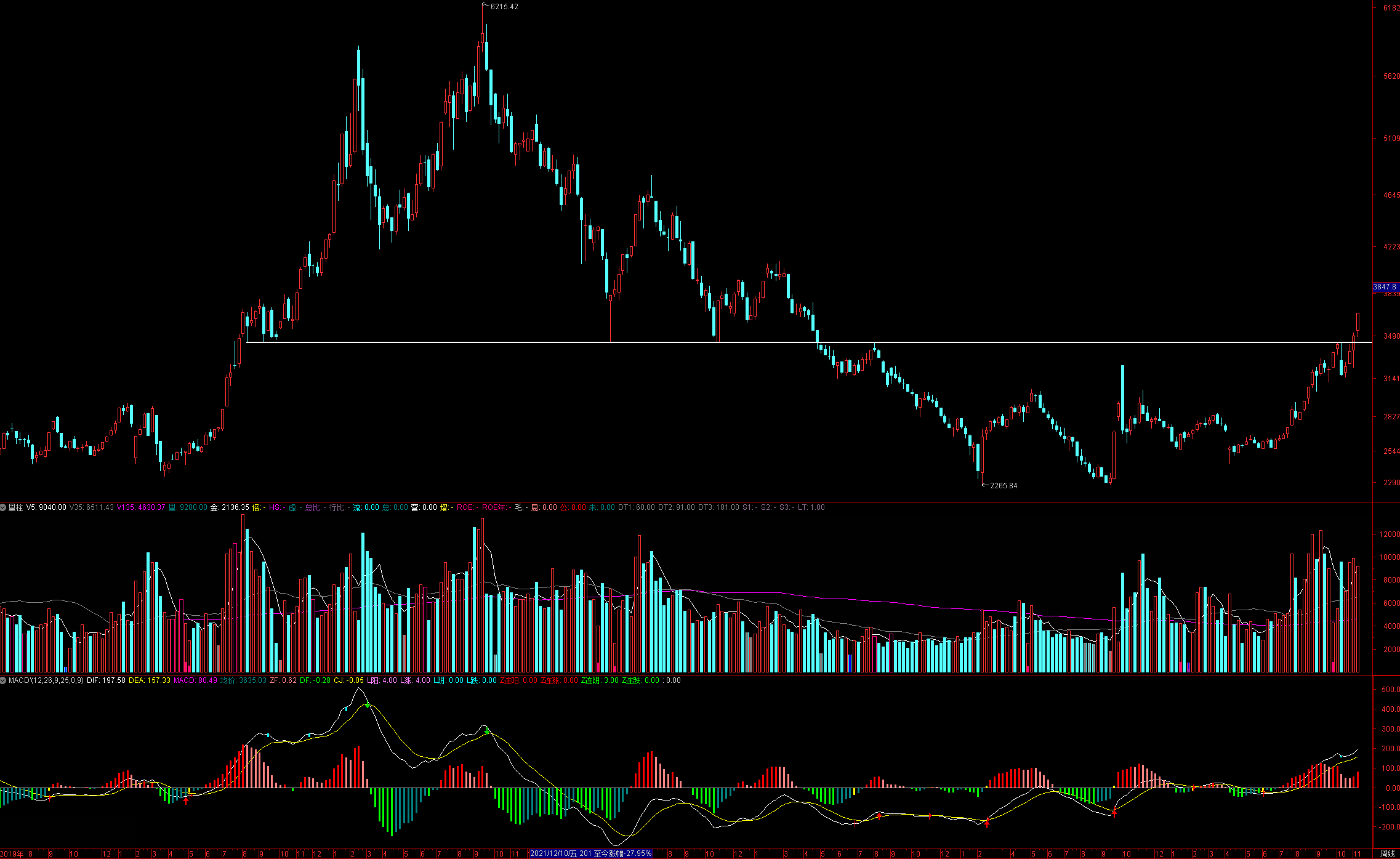 白线处是峰顶线强支撑,地量回踩不破,依托白线起跳,有再次挑战前高可能。