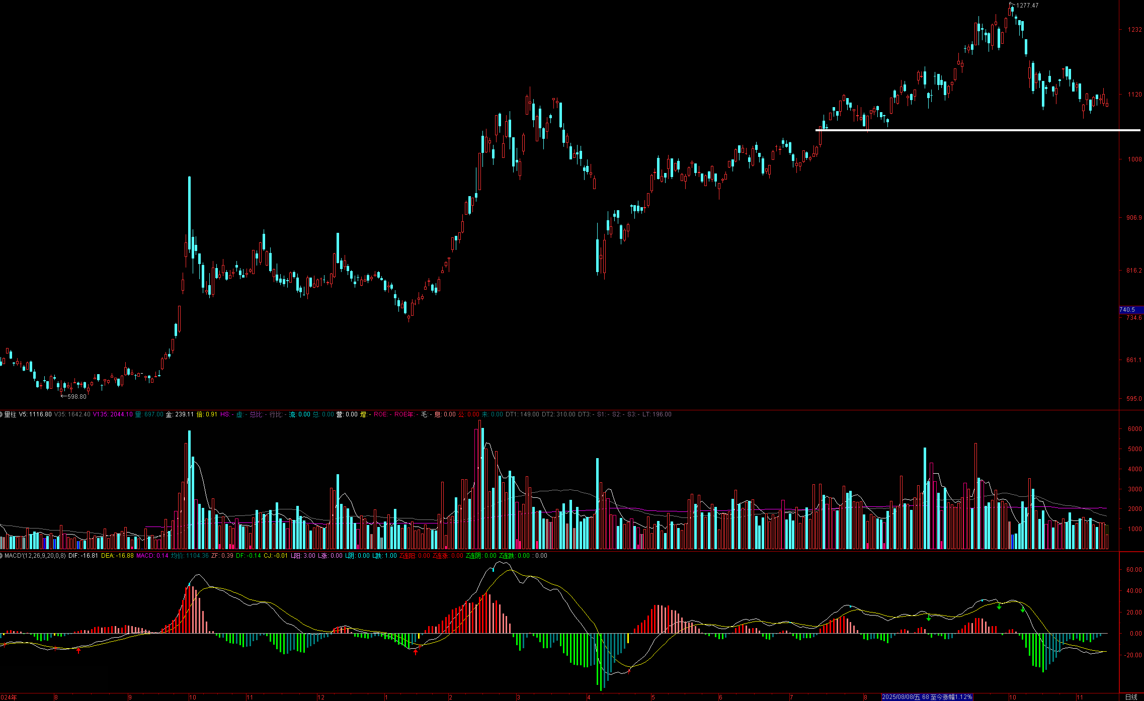 技术走势上,处于中线上升趋势中,这波调整是上涨途中的正常洗盘;白线处是个支撑位,观察能否止跌。