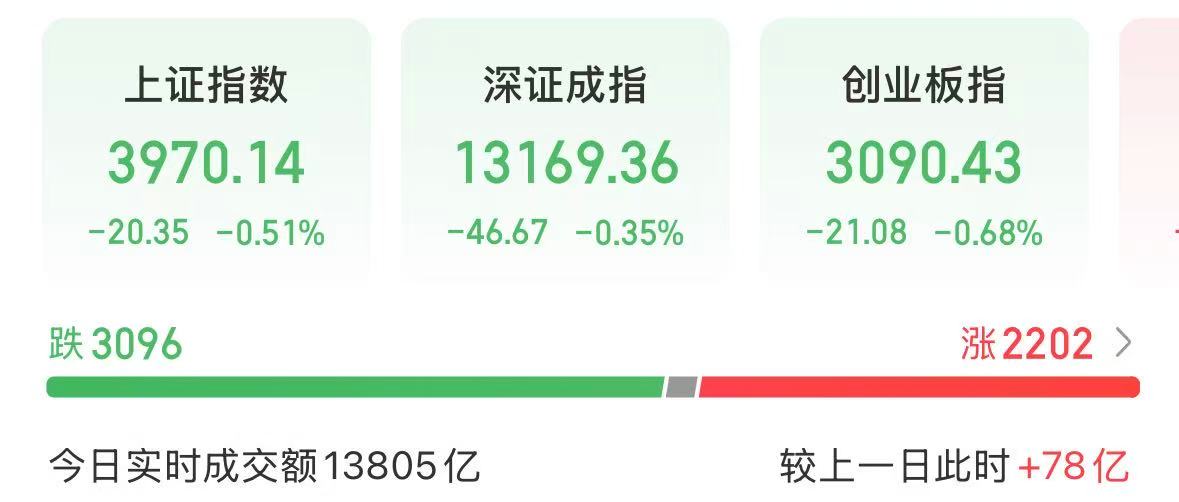 盘面上,截至我发文,上证指数下跌0.51%,深成指数下跌0.35%,创业板指数下跌0.68%