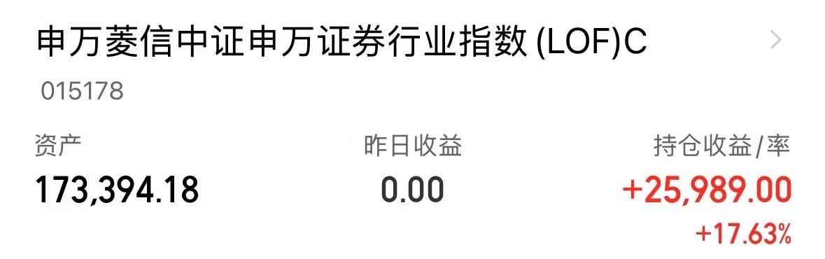 继续布局$申万菱信中证申万证券行业指数(LOF)C(OTCFUND|015178)$