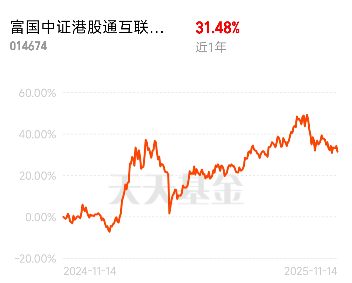 白酒热的时候,顺手配了点富国中证港股通互联网ETF联接C,看中它聚焦港股互联网龙