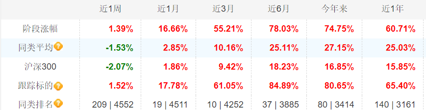 今年来大涨74.75%,跑赢同类产品超47%,市场排名前3%。
