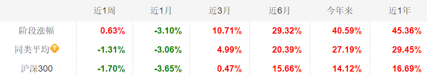 今年来大涨40.59%,大幅跑赢同类平均及沪深300,进攻性很强。
