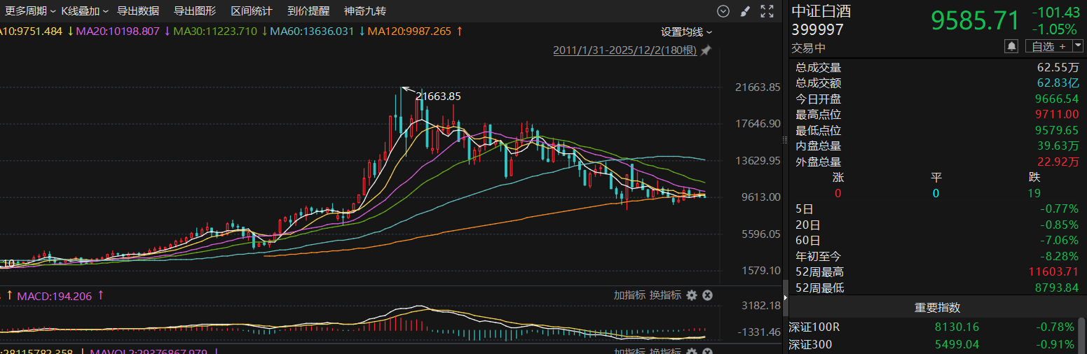接下来我就是等12月出11月的CPI数据,如果连续两个月企稳,我觉得白酒有可能走出长期低迷,技术面上,120月均线处支撑还可以