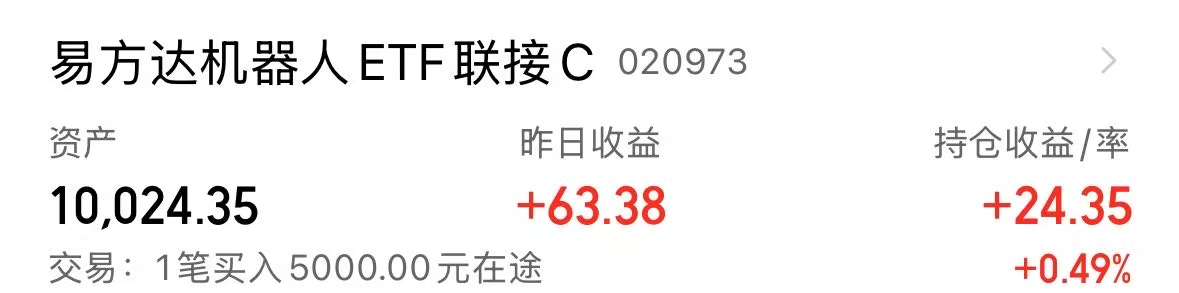 今天我加仓了$易方达机器人ETF联接C(OTCFUND|020973)$ 5000元