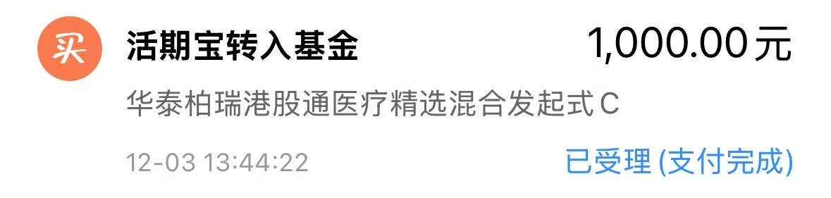 我今天继续加仓$华泰柏瑞港股通医疗精选混合发起式C(OTCFUND|019127)$ 1000,低位布局港股创新药