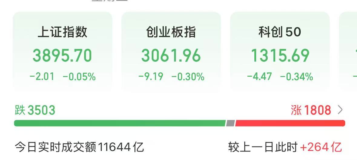 盘面上,截至我发文,上证指数下跌0.05%,创业板指数下跌0.30%,科创50下跌0.34%