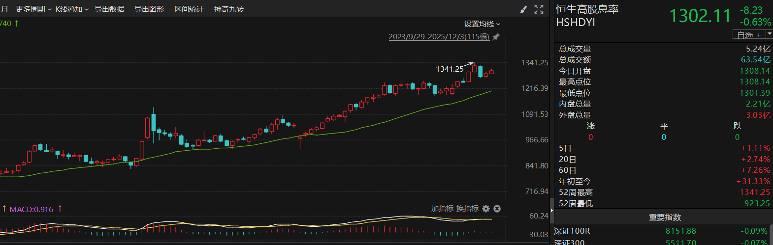 今天红利板块表现强势,逆势上涨,有可能开始新一轮行情,现在市场整体还在震荡区间,布局红利会更稳一些。另外,我认为港股高股息资产在当前低利率环境下的配置价值还不错,稳定的现金流和防御属性,可以让我比较安心,当前定存破“1”,港股通高股息股息率很多还在4%以上,所以我也是开始增加红利类资产来打理我的闲钱。