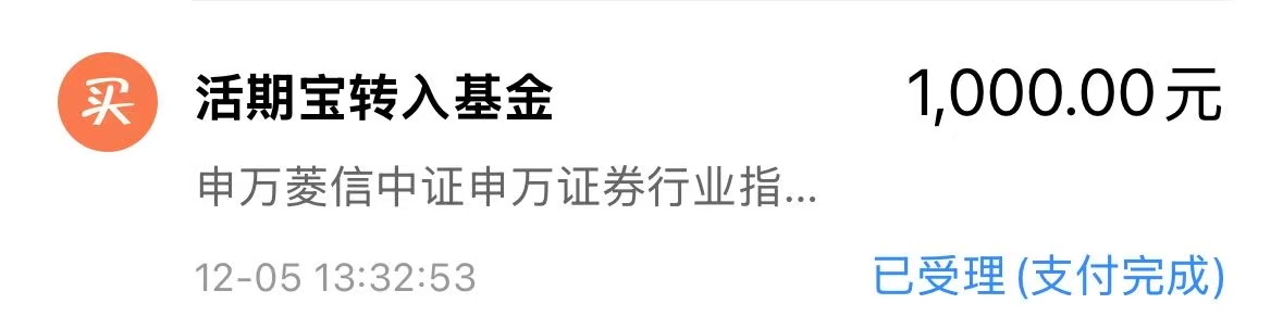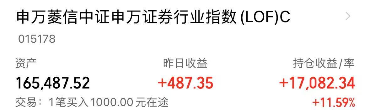 我今天建仓$申万菱信中证申万证券行业指数(LOF)C(OTCFUND|015178)$ 1000元