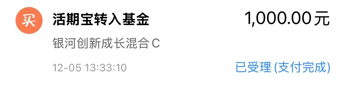 今天我加仓了$银河创新成长混合C(OTCFUND|014143)$ 1000元