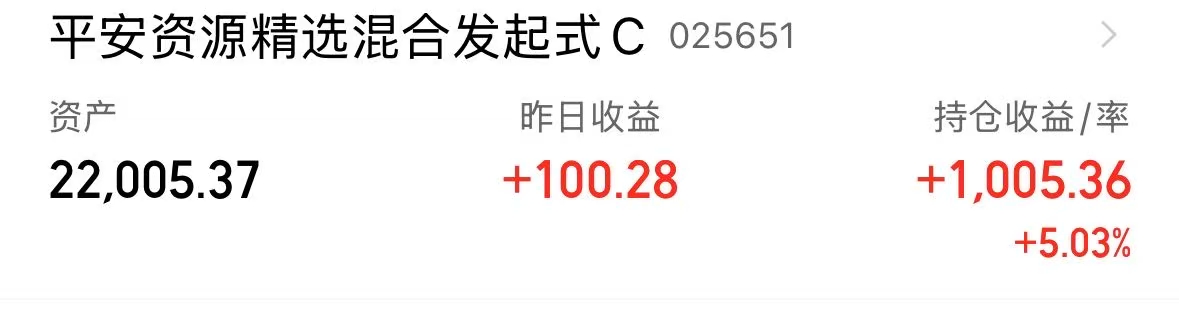 近期有色资源开始走强,我之前布局的有色开始吃到肉,AI科技和新能源的发展离不开大量的铜,其他有色资源也需求量加大,我长期看好,后面遇到回踩再考虑慢慢加$平安资源精选混合发起式C(OTCFUND|025651)$