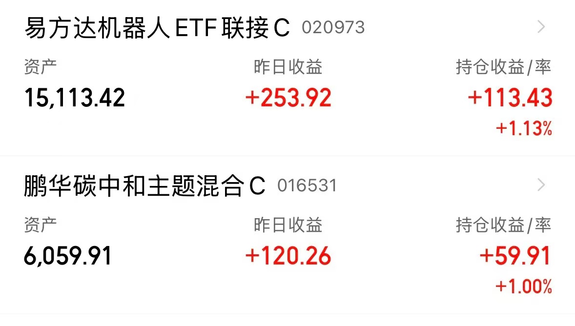 昨天到今天机器人开始企稳,前期都加过了,今天先不动,我比较看好机器人明年Q1的发展空间,后面也是遇到回踩再加大布局$鹏华碳中和主题混合C(OTCFUND|016531)$