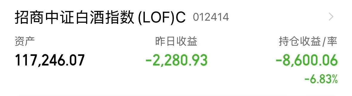 跌这么多我是不可能割得了,我已经做好2年的准备,还是继续左侧布局$招商中证白酒指数(LOF)C(OTCFUND|012414)$