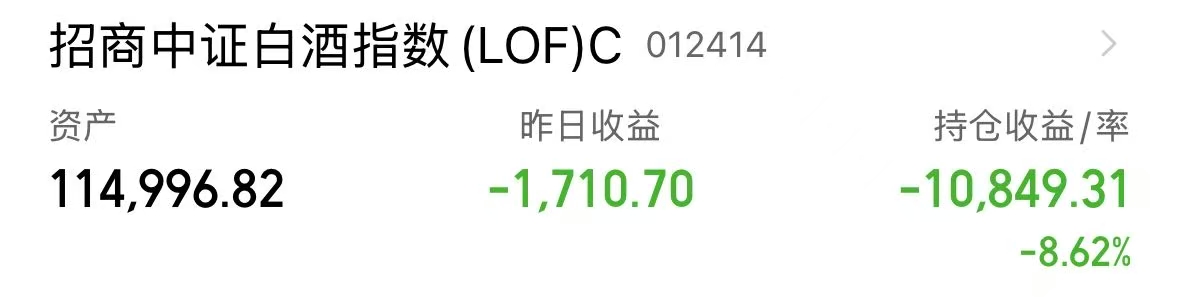 白酒已经跌这么多,我觉得已经比较低了,也该反弹了,我已做好2年的准备左侧布局$招商中证白酒指数(LOF)C(OTCFUND|012414)$
