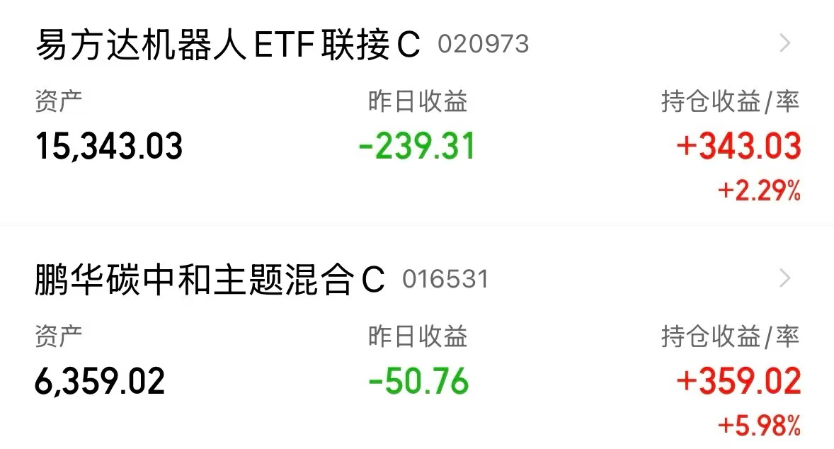 机器人今天继续回踩,连20日线都还没到,我没啥担心的,后天天如果继续回踩,我反而想要趁低位再加大布局$鹏华碳中和主题混合C(OTCFUND|016531)$