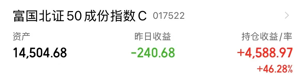 今天我不动,北证50回踩,他的盘子比较小,弹性也更大,继续回次啊,我再加$富国北证50成份指数C(OTCFUND|017522)$