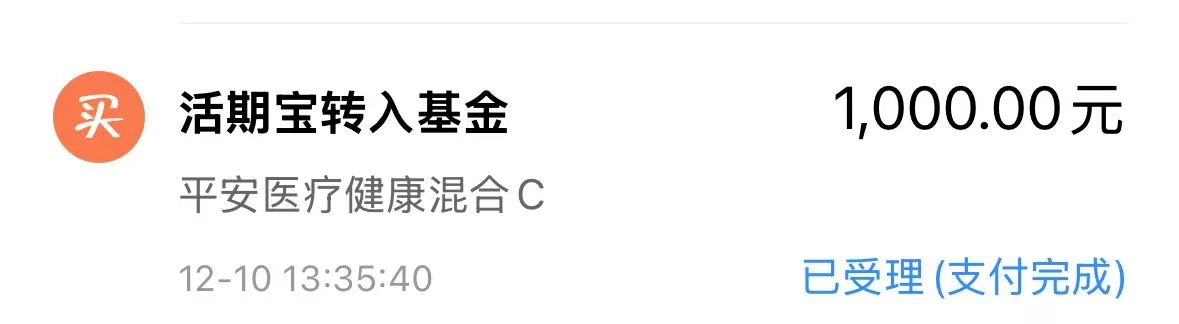 我今天继续加仓$平安医疗健康混合C(OTCFUND|020137)$ 1000元