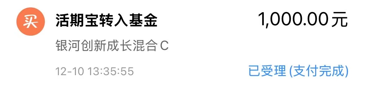 今天我继续重点加仓$银河创新成长混合C(OTCFUND|014143)$ 1000