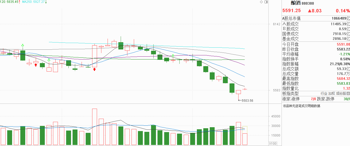 白酒又来!探底小阳是转机还是假象?远离均线下,反弹力度或有限