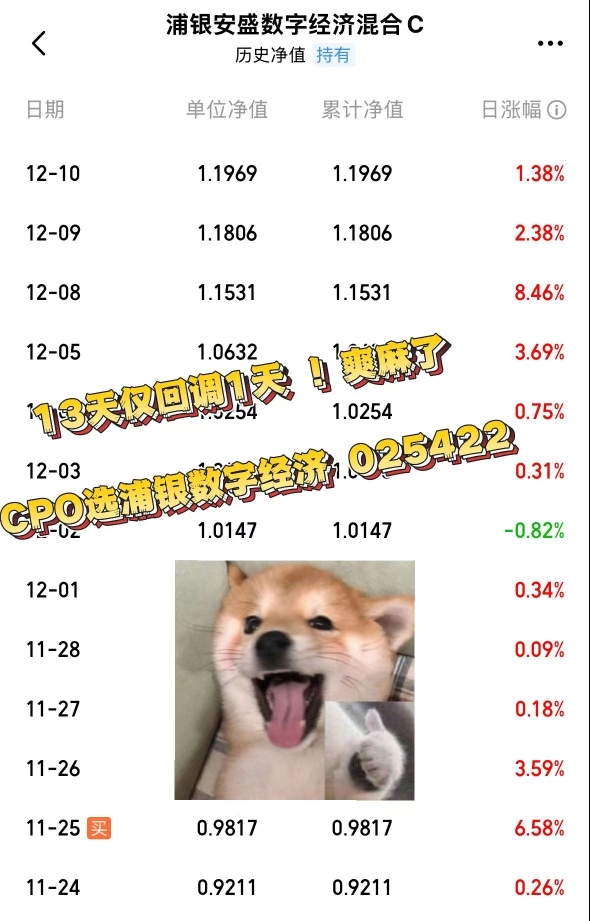 白酒看着也开始反弹了,搭配着近期的热门cpo一起配置可以互补的,更有各的优点,看着$浦银安盛数字经济混合C$ 业绩跑赢同类就是不错的选择