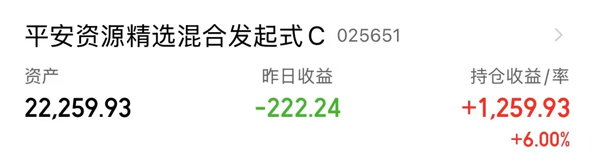 今天我不动,躺平吃肉,有色继续回暖,美联储降息后,铜也进一步上升,后面遇到回踩再考虑加大$平安资源精选混合发起式C(OTCFUND|025651)$
