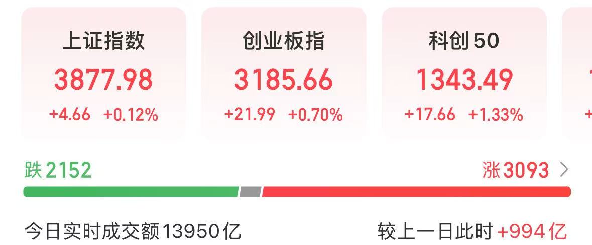 盘面上,截至我发文,上证指数上涨0.12%,创业板指数上涨0.70%,科创50上涨1.33%