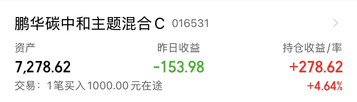 今天小涨,我就小加,今天我继续加仓$鹏华碳中和主题混合C(OTCFUND|016531)$
