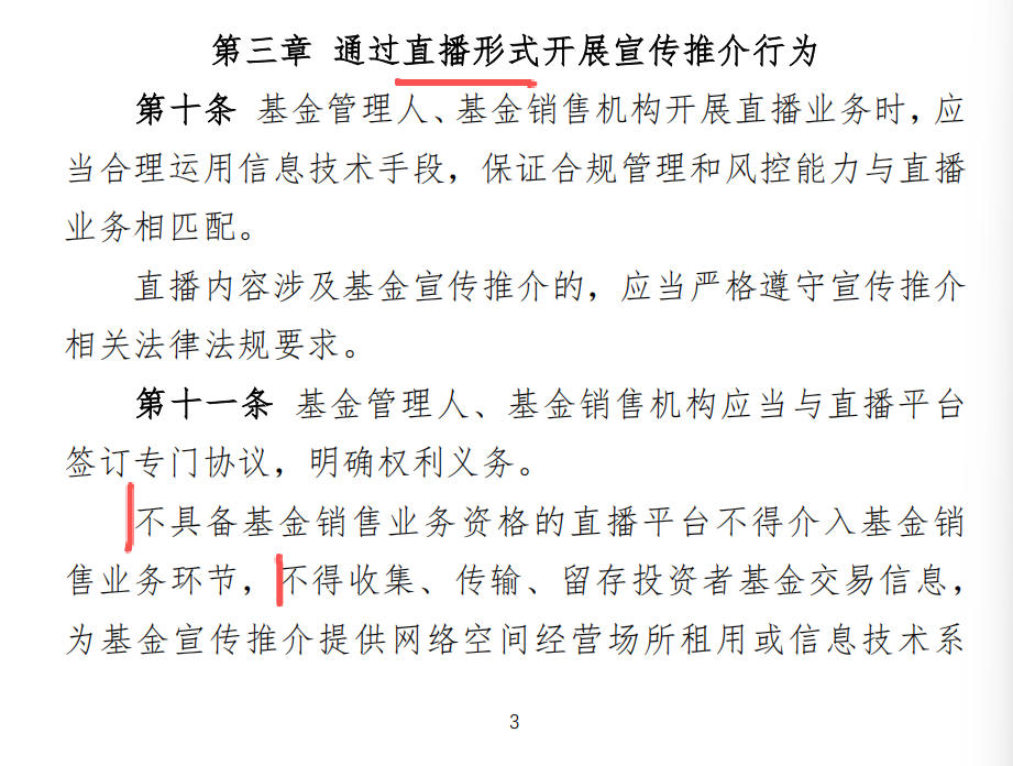 我看有的解读说是“不具备基金销售业务资格的直播平台不得介入基金销售业务环节”说是规范和理清,没有销售资格的平台,以后都没有基金公司直播了。