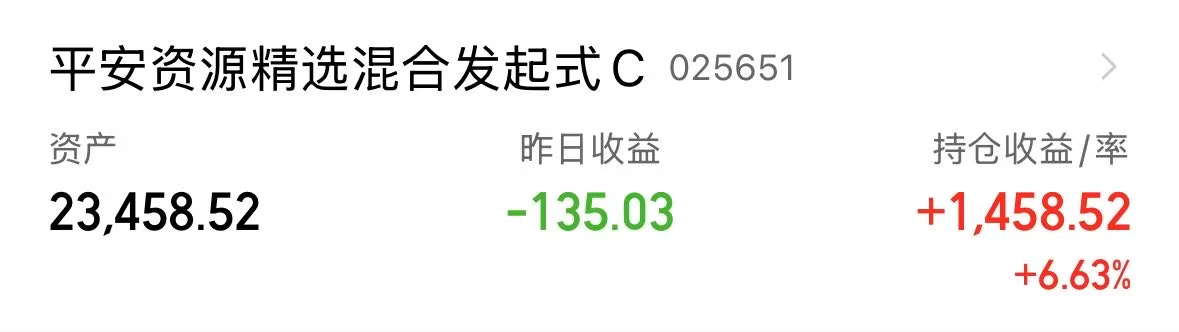 有色今天继续回升,我选择不动,美联储降息背景下,有色将持续受益,我还是持续持有$平安资源精选混合发起式C(OTCFUND|025651)$