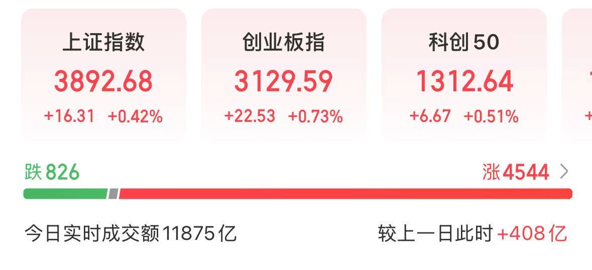 今天三大指数同时企稳回暖,创业板相对较强,科创50、主板次之,但整体差异不大,属于是普惠格局
