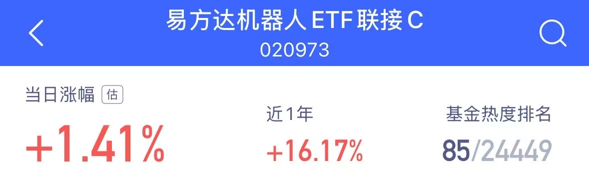 机器人板块今天还不错,此前在机器人指数回调时我已加大布局,近期企稳迹象到位,对我来说就是想趁着没起飞之前赶紧再把想加的布局完成。产业方面,我国机器人产业规模持续增长,大模型、具身智能等技术与机器人深度融合,正提升其交互与决策能力。我更关注的是特斯拉Optimus量产筹备等进展,目前已经在审厂,有望带动国内机器人产业链需求加码。我之前布局的$易方达机器人ETF联接C(OTCFUND|020973)$今天盘中估值表现还不错,今天可以躺平吃肉了