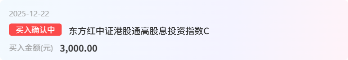 红利,连续第三周继续加仓红利资产,我再加3000元$东方红中证港股通高股息投资指数C(OTCFUND|024228)$。逻辑是最近港股调整了一段时间,一些资产又出现了性价比了,红利资产就是其中的重要部分,想着配置一些即可以防守长期也逻辑很正。长期逻辑是高股息资产的相对吸引力上升,伴随着资金长线化,险资、养老金等对红利资产的配置力度有望稳步提升,港股红利品种的股息率相对A股更高,或具有更强的吸引力,有信心,继续逐步配置。