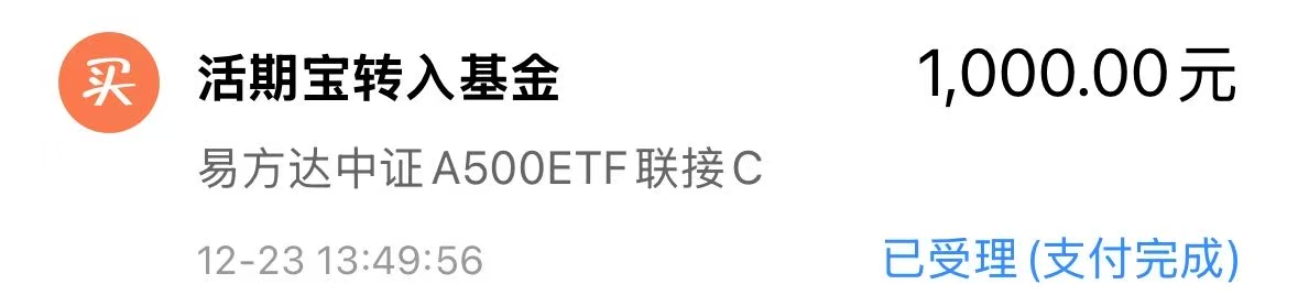 我今天对$易方达中证A500ETF联接C(OTCFUND|022460)$1000元