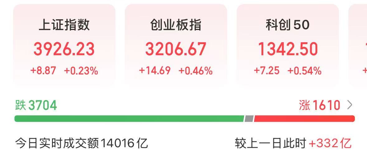 盘面上,截至我发文,上证指数上涨0.23%,创业板指数上涨0.46%,科创50上涨0.54%