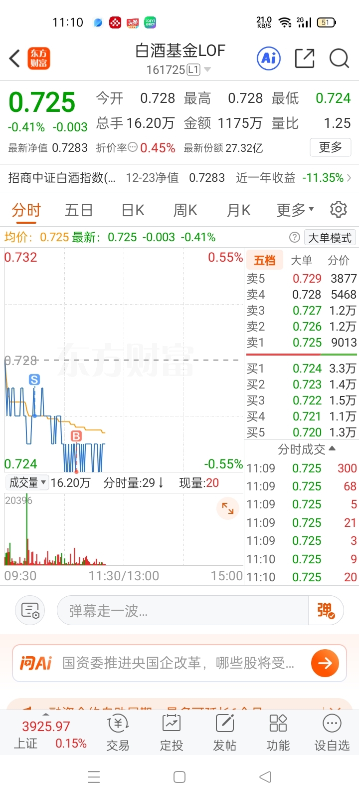 $白酒基金LOF(SZ161725)$ 看你跌到什么时候!本也不高不怕,740