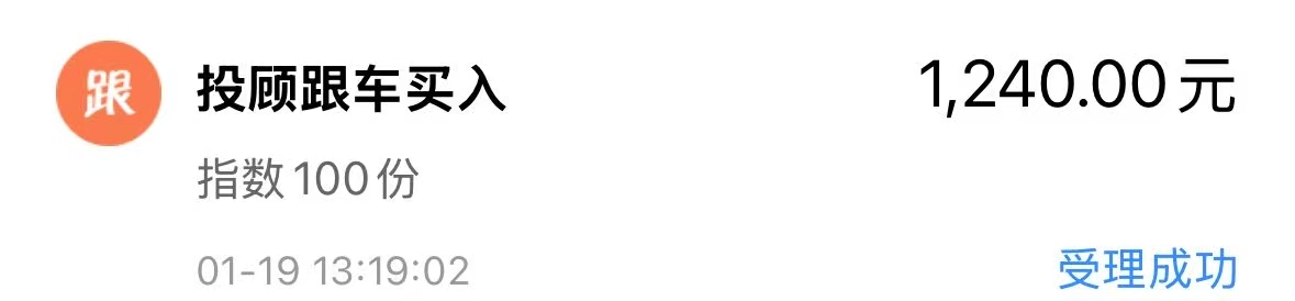 我今天尝试广发基金的指数100投顾组合,跟车三笔$指数100份$