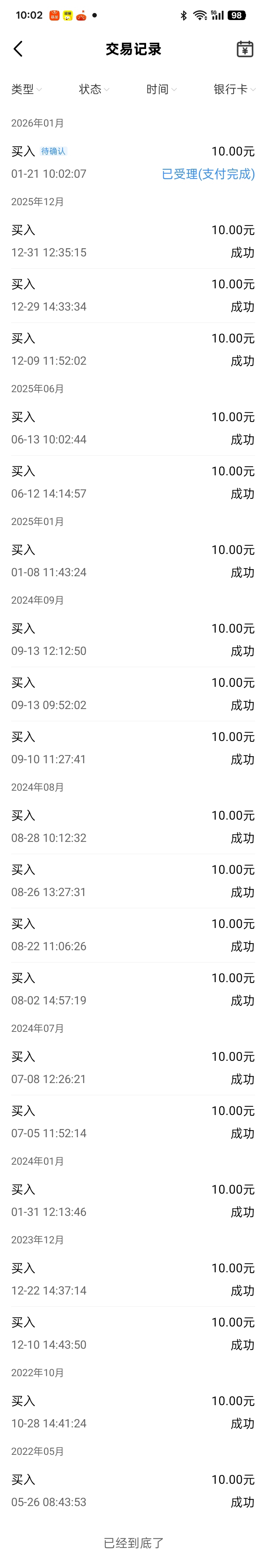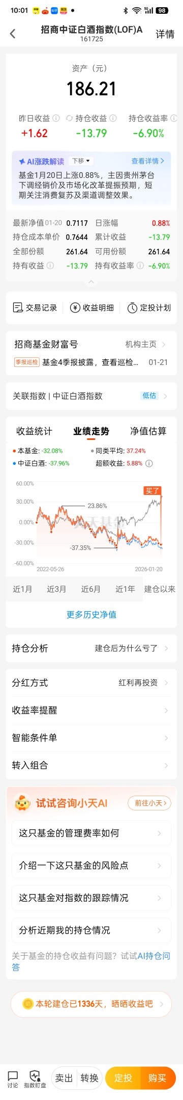 1336天后又买10元白酒指数基金。