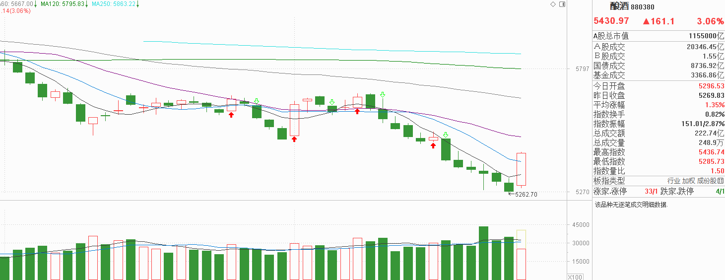 白酒绝地反击!探底5天线后强势回升,是超跌反弹还是昙花一现?